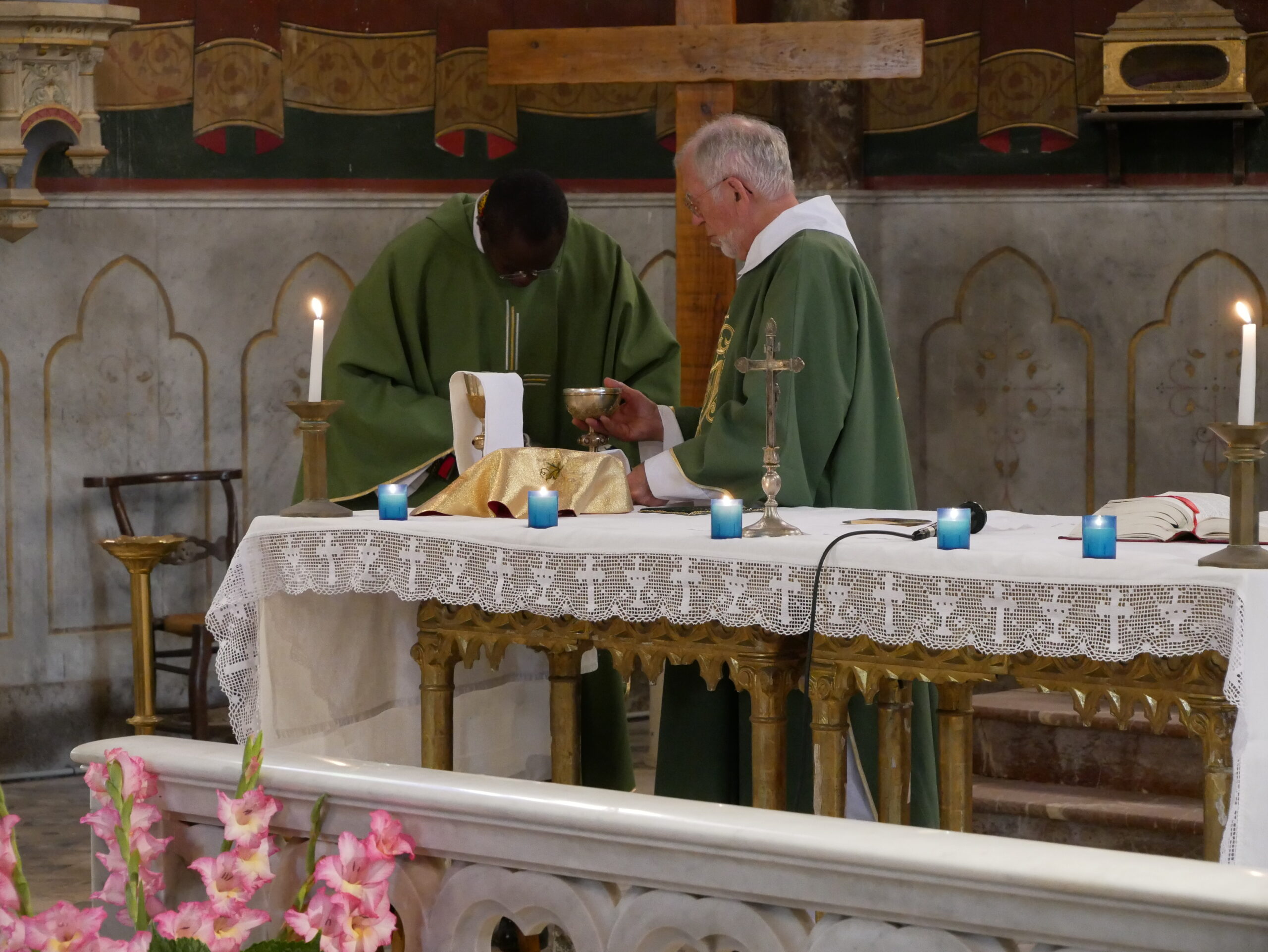 La Messe est finie, l’église Saint-Saturnin va de nouveau accueillir toutes les cérémonies religieuses : baptêmes, mariages (il y en a un prévu en août), Messes dominicales, funérailles, ….