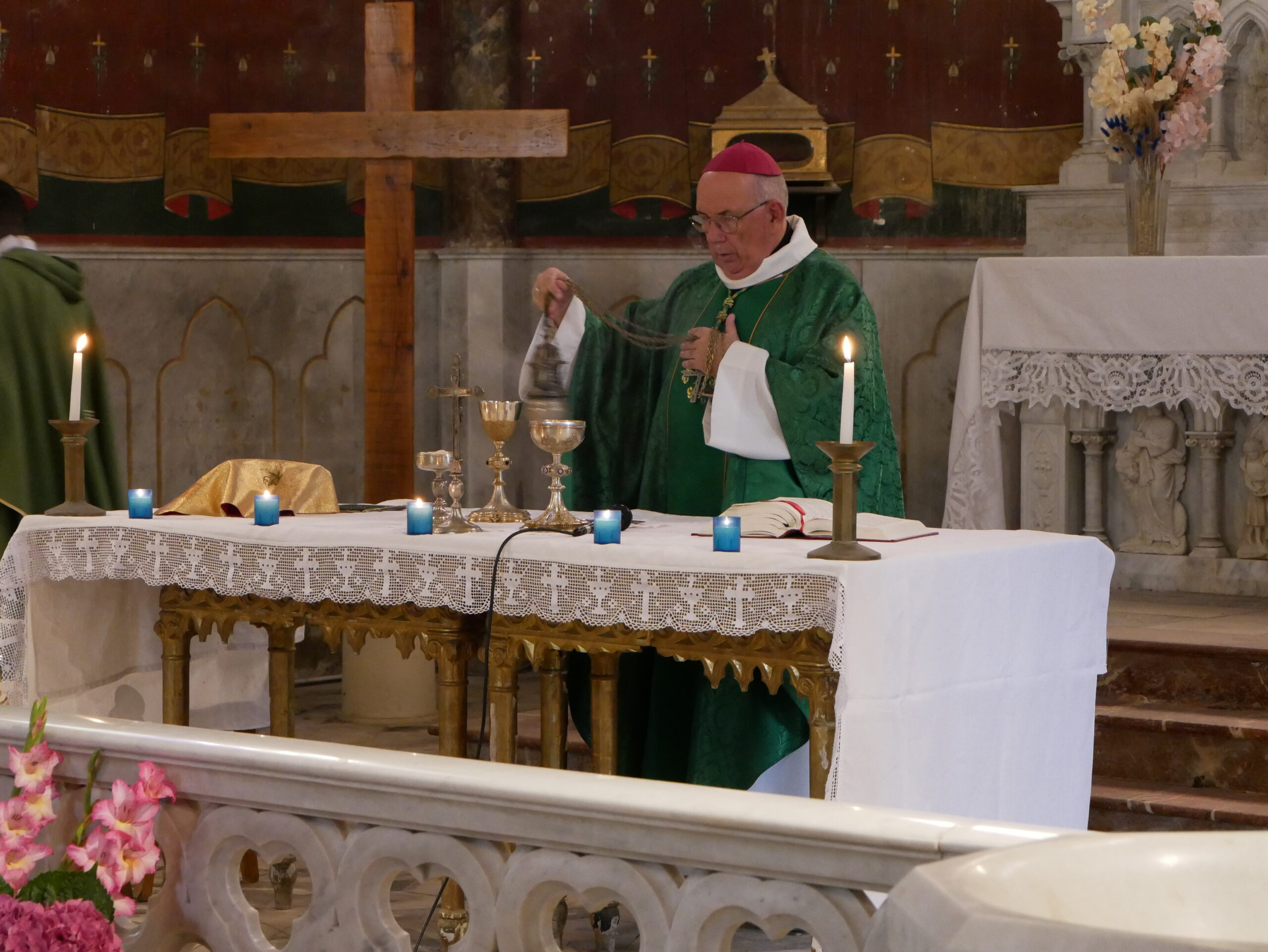Monseigneur va encenser l’autel avant que la cérémonie ne débute